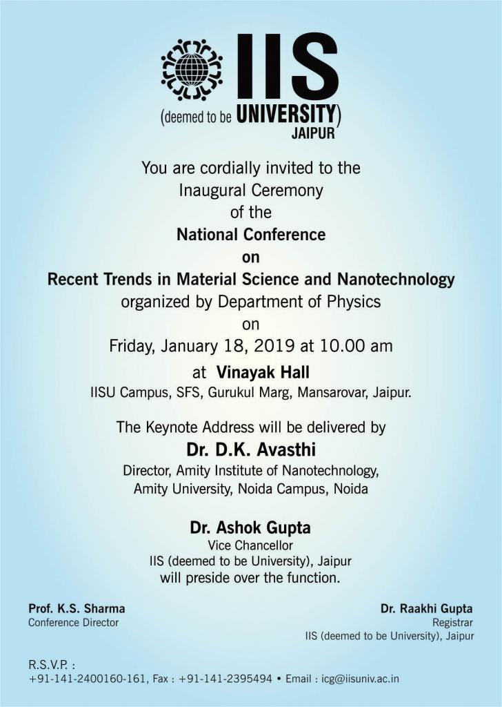 National Conference on Recent Trends in Material Science and Nanotechnology