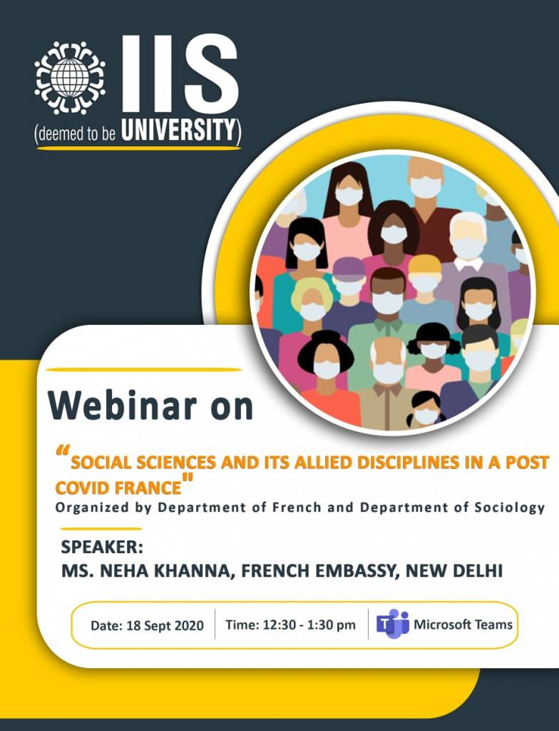 This is for information of all students of social sciences that a webinar on “Social Sciences and its Allied Disciplines in a Post COVID France” is being organized by the university in association with French Institute, Jaipur. The details are as follows: